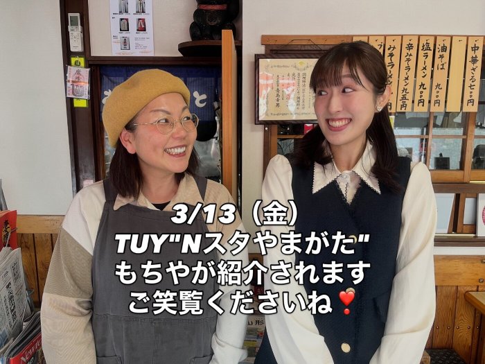 3/13(金)TUY"Nスタやまがた"で紹介されました。 2026年03月13日(金) HPに来てくださってありがとうございます♪ 3/13(金)TUY"Nスタやまがた"さんで紹介されました! 佐藤友美(さとうゆみ)アナウンサーさん 可愛かったですー! ぜひご笑覧くださいね!